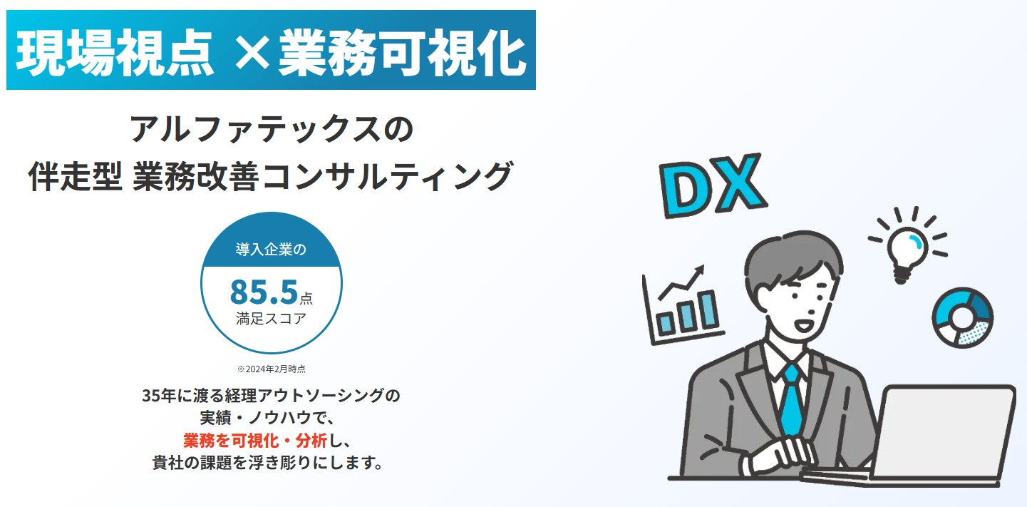 アルファテックスでは35年に渡る経理アウトソーシングの実績・ノウハウで、業務を可視化・分析する