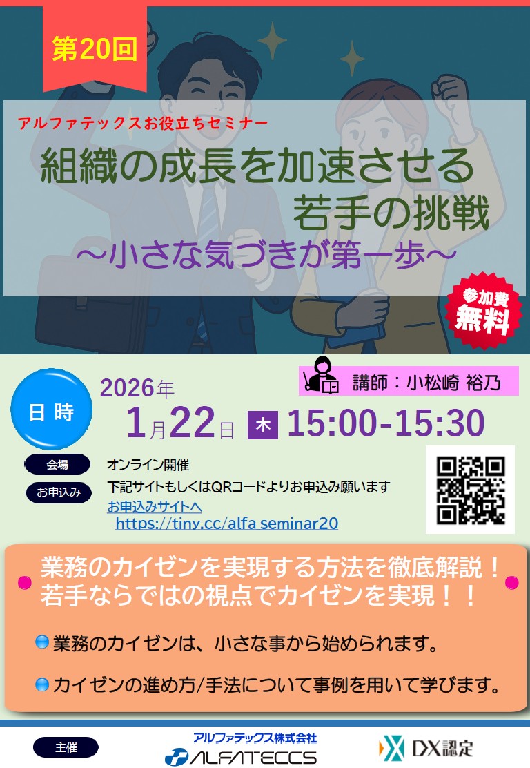 【第20回】組織の成長を加速させる若手の挑戦 ~小さな気づきが第一歩~/お役立ちセミナーのご案内(1/22)